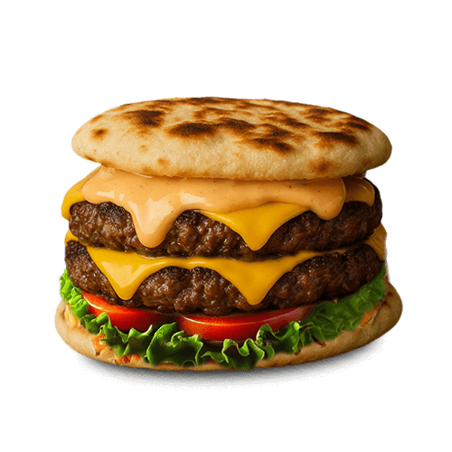 2 STEAKS, CHEDDAR, SALADE, TOMATE, OIGNON, SAUCE AU CHOIX,