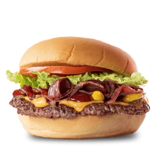 BUN, STEAK SMASHE, CHEESE, BACON, SALADE, PICKLES, TOMATE, OIGNONS, SAUCE BIGGY,