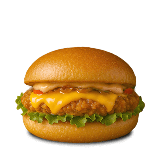 BUN, CRISPY CHICKEN, CHEESE, TOMATE, SALADE, SAUCE BIGGY,